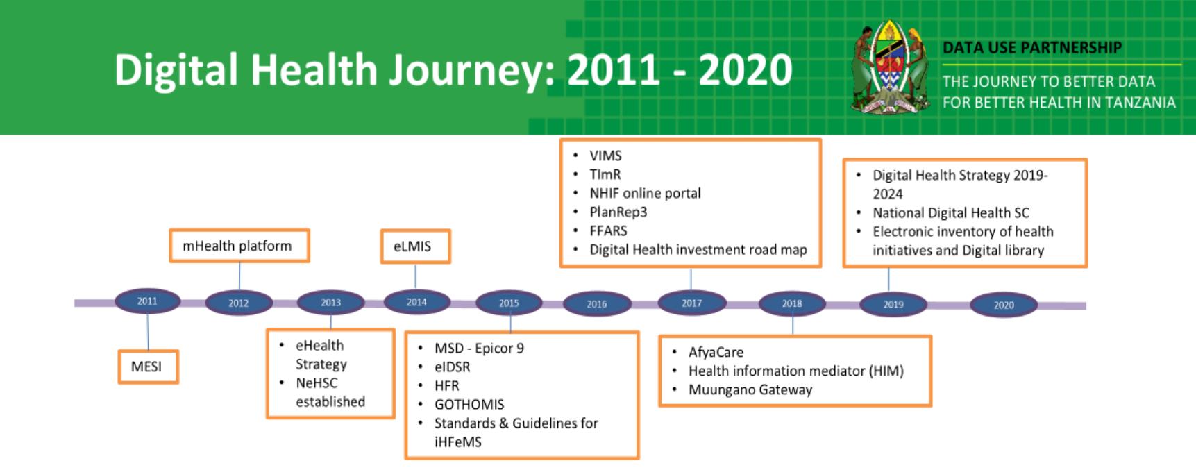 Between 2011 and 2020, efforts included ensuring there is appropriate governance mechanism and structures to coordinate the digital transformation journey and digitalization of supply chain management (eLMIS, VIMS, MSD Epicor 9) and point of care systems (GOTHOMIS, AfyaCare and TimR)